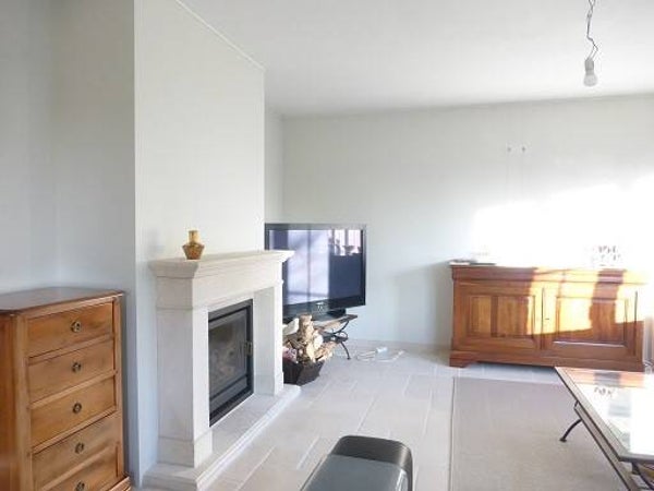 The apartment is ready to move in (furnished) and has 1 bedroom, 1 bathroom, 1 living room with fireplace, 1 dining room, 1 fully equipped open kitchen, 1 toilet with sink, 1 storage room with washing machine and dryer and a private parking space.